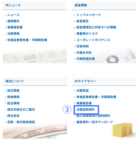 ③決算説明資料をクリックし、2025年3月期決算説明資料をクリックです。